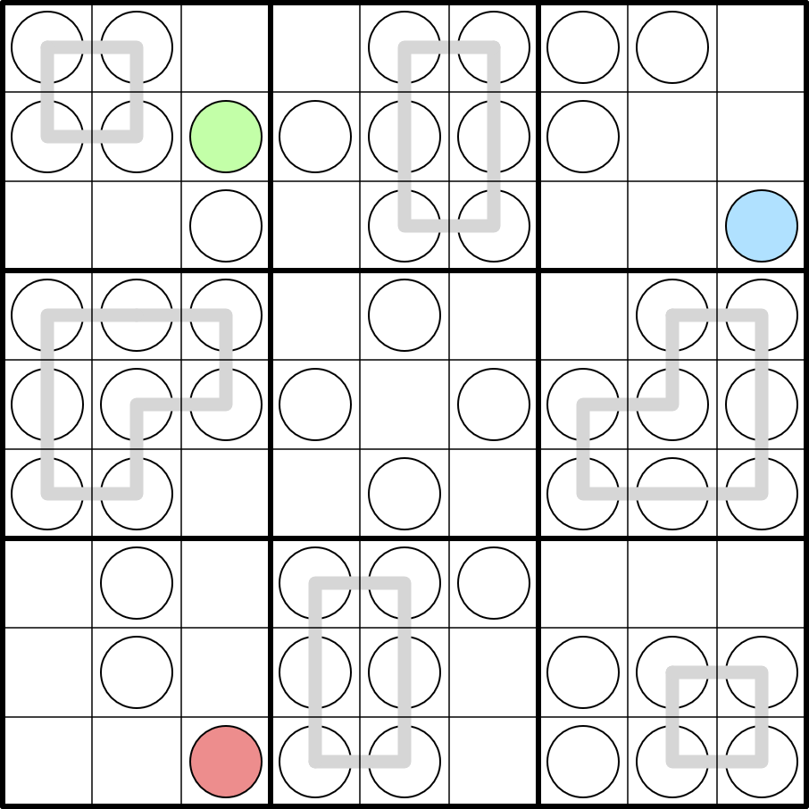 Each gray line can be divided into segments of contiguous cells, where the digits in each segments sum to 10. These segments cannot overlap and every cell is part of exactly one segment.