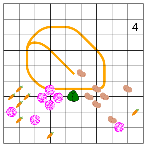 Cells separated by carrots, potatoes, red cabbage and sprouts follow one of the following rules: