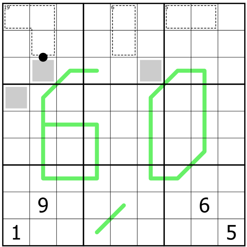 German Whispers: Adjacent digits on green lines must differ by 5 or more.