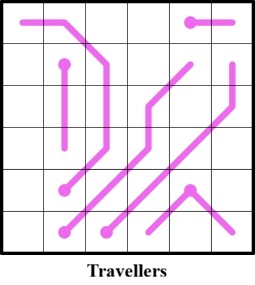 – The digit in a dot is exactly 1 less than the number of different regions that its Renban line travels through. No two dots may contain the same digit.
