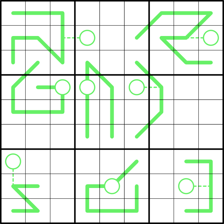 Some circles are located on their Mystery Whisper, while the rest are connected to theirs via a dotted line; these dotted lines are purely visual and are not subject to the Mystery Whisper rule.