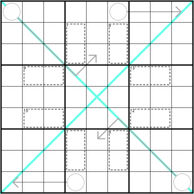 Anti-diagonal: each of the major diagonals (marked in blue) may use only three digits.