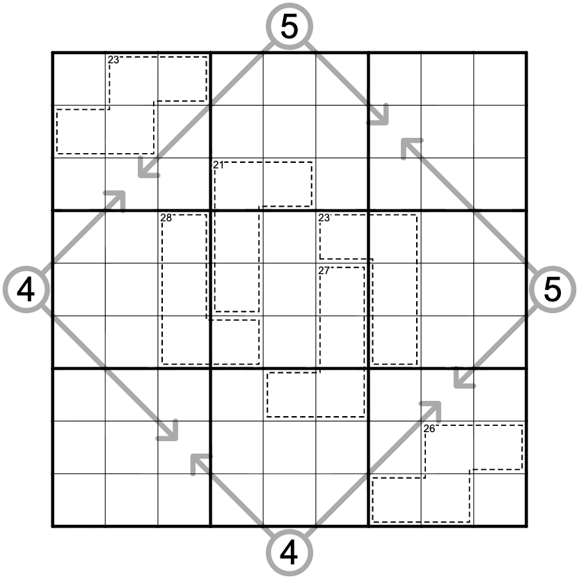 Note: In this puzzle, each skyscraper clue is also an arrow sum.