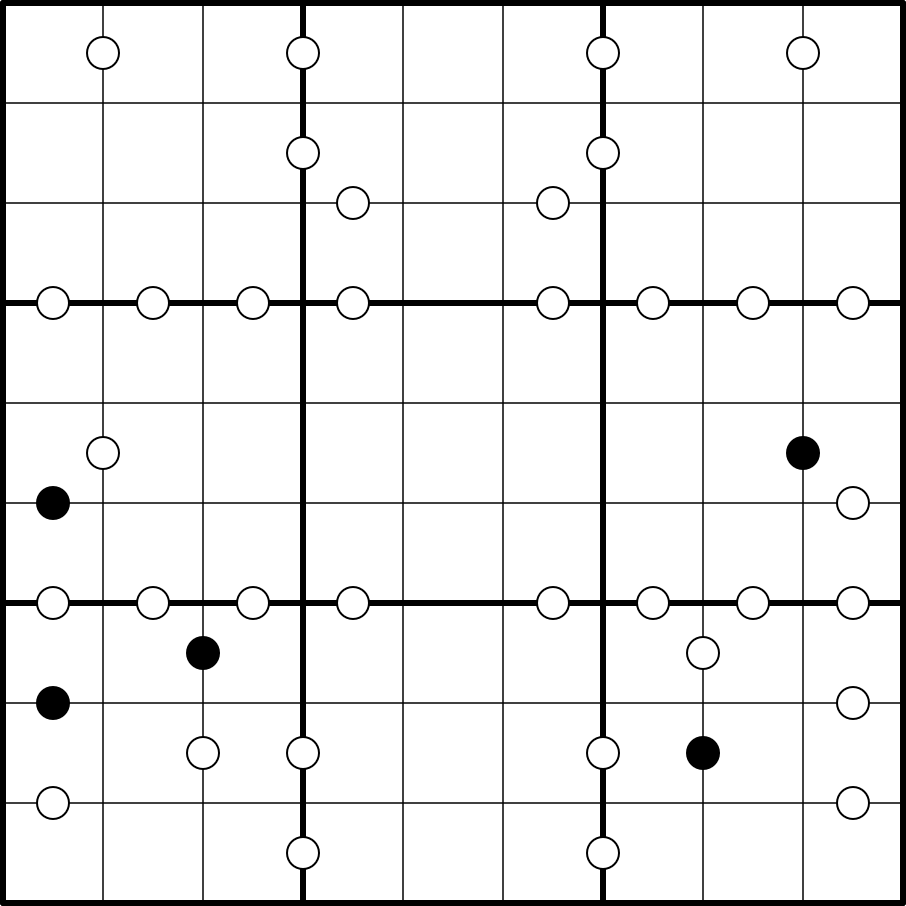 Not all possible dots are necessarily given.