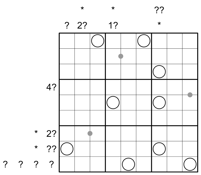 - Ein Fragezeichen steht für eine beliebige Ziffer von 0 bis 9. Hinweise dürfen jedoch keine führende Null enthalten.