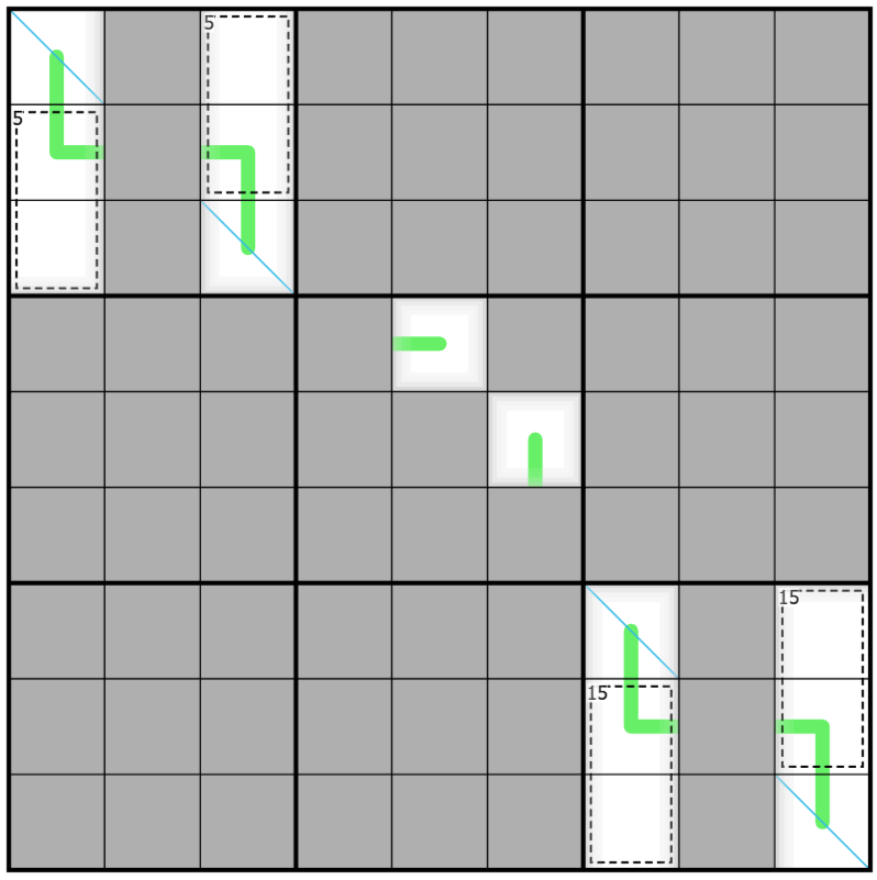 Diagonale: Ziffern entlang beider Hauptdiagonalen müssen ebenfalls aus einem Set von 1-9 bestehen.