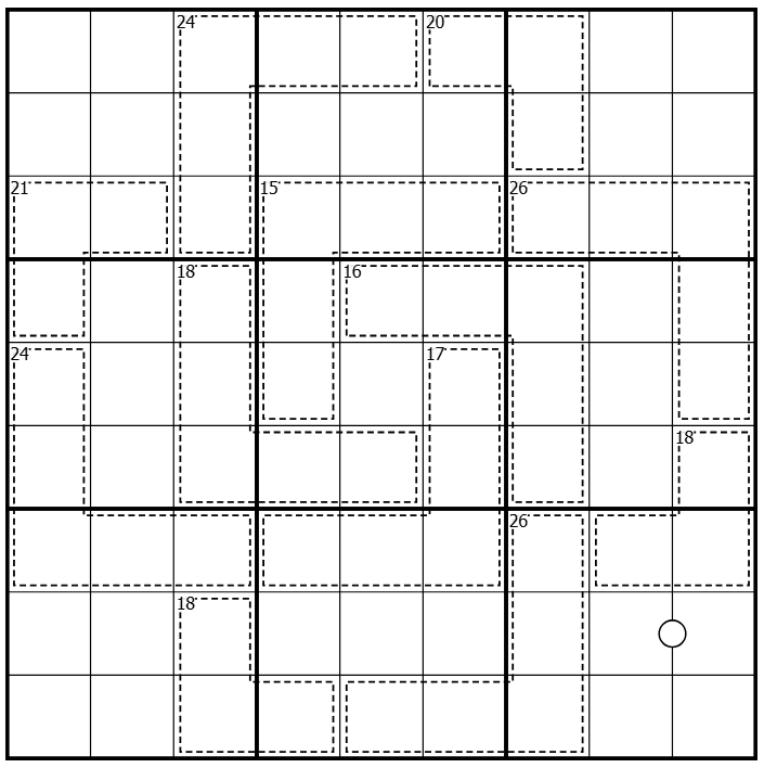 Kropki: Digits connected by a white dot are consecutive. Not all possible dots are given.