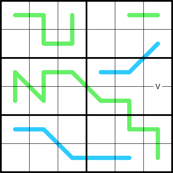 Very cool puzzle, though, and a 6x6 is a great size for it, since all digits but 5 have a common multiple of 12, making the RS lines pretty approachable.