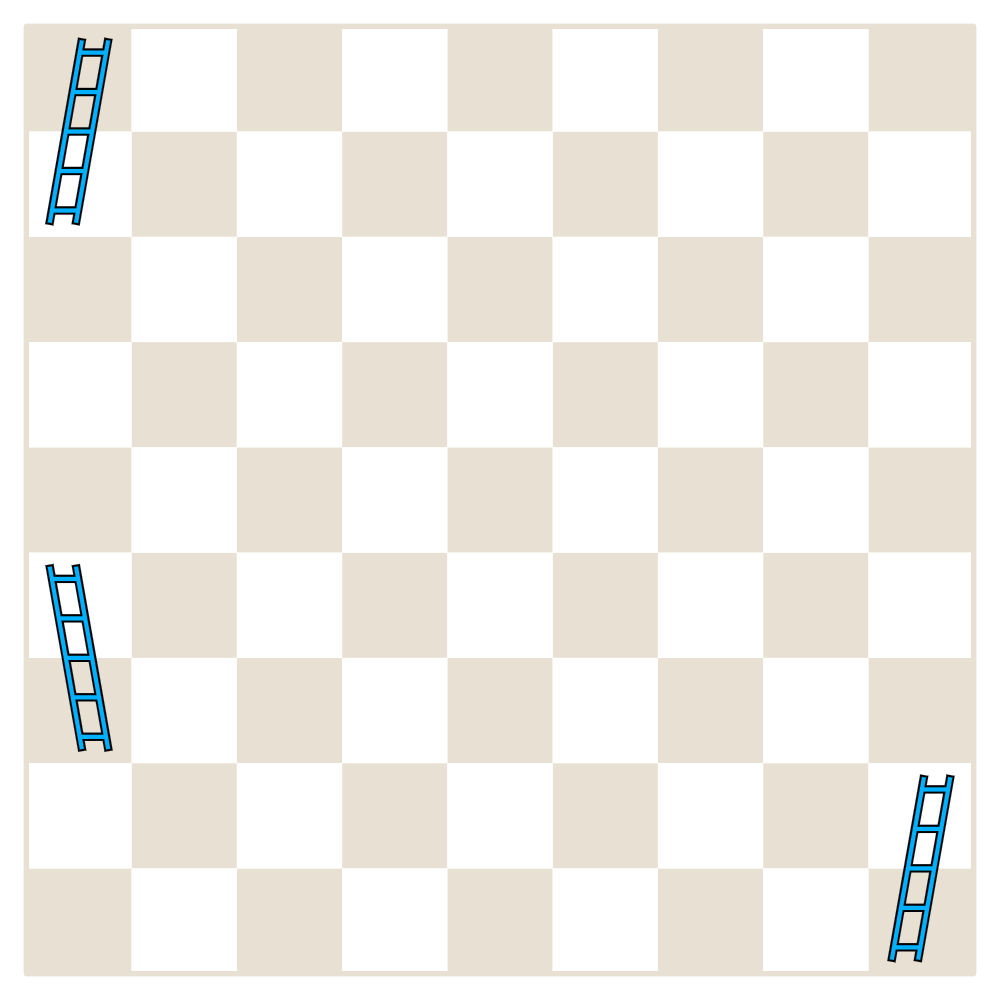 - Draw two snakes, which may not overlap, that together cover every cell not already covered by a ladder.