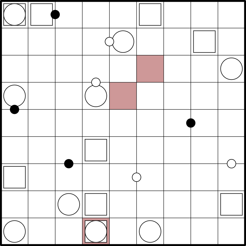 Squares: Digits in squares indicate how many cells of their own region including themselves are shaded. Each square belongs to a different region.