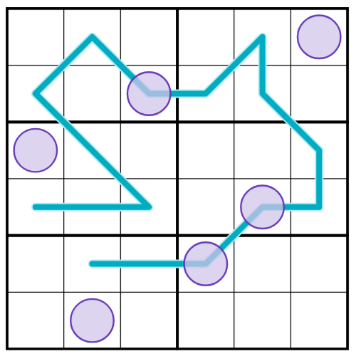 • For each box, the values on the cyan line within that box sum to a value N, which is to be deduced by the solver.
