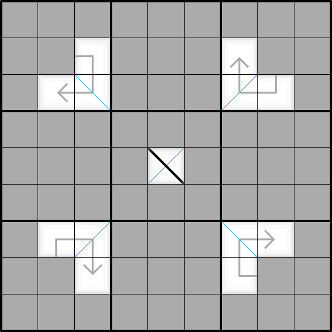 digits may not repeat along either diagonal.