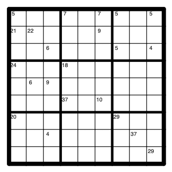 If a clued cell is shaded, the clue indicates the sum of all numbers in the orthogonally connected group of shaded cells the clued cell belongs to.