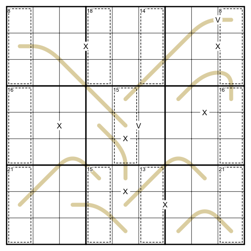 XV Pairs: Digits separated by an X sum to 10. Digits separated by a V sum to 5. Not all X’s and V’s are necessarily given.