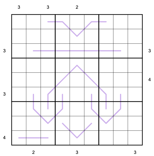 Skyscrapers: Each cell represents a ‘skyscraper’ whose height is the digit in that cell. Taller skyscrapers obscure the view of smaller ones. Clues outside the grid tell how many skyscrapers are visible looking across the row or column from the direction of the clue.