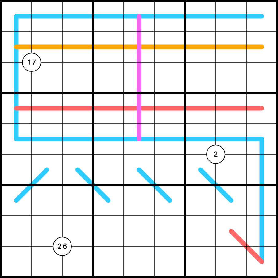 Digits along a pink renban line form a set of consecutive digits in any order.