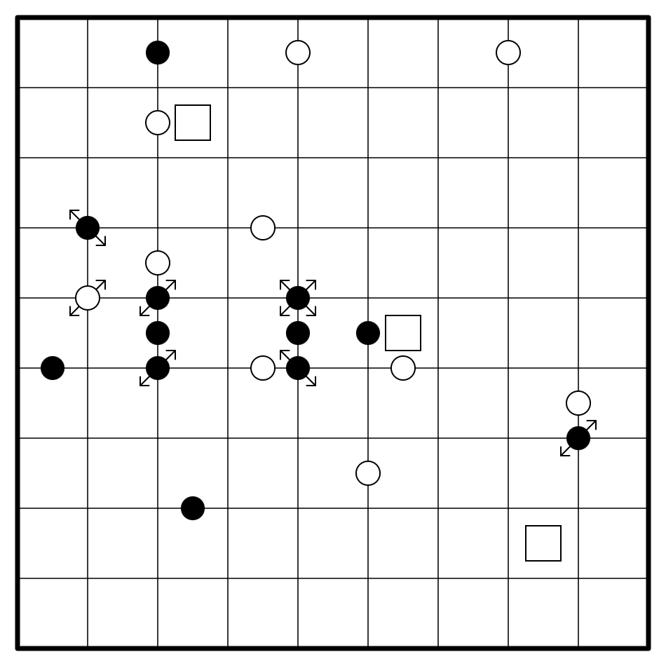 • *Corner region dots: Dots on cell's corners join two diagonally adjacent cells pointed to by the arrows.