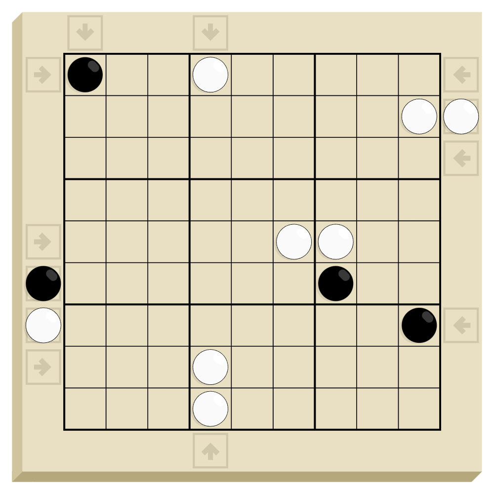- Values orthogonally on either side of a black stone have a 1 to N ratio, where N is the digit on the stone.