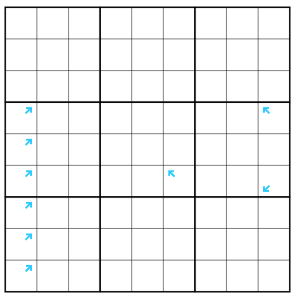 Normal sudoku rules apply. A digit N on a cell with an arrow indicates that there is a straight line N cells long starting from the cell the arrow clue is on and extending in the direction of that arrow. This line acts as a region sum line: box borders divide the line into segments with the same sum. Each line must cross at least one box border.