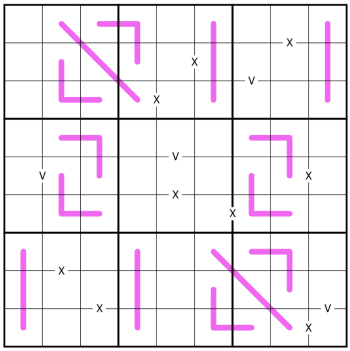 Renban: Each pink line contains a set of consecutive, non-repeating digits in any order.