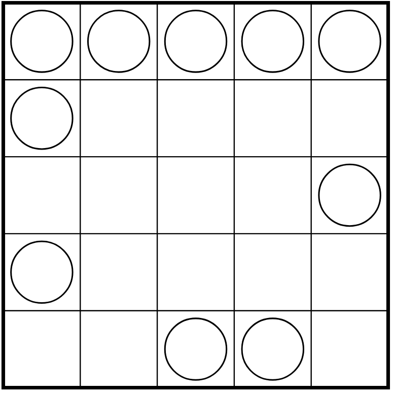 Regionen: Teile das Gitter in orthogonal verbundene Bereiche ein, sodass jede Zelle zu genau einem Bereich gehört. Jeder Bereich enthält genau einen Kreis. Die Ziffer im Kreis gibt die Größe seines Bereichs an. Ziffern dürfen sich innerhalb eines Bereichs nicht wiederholen.
