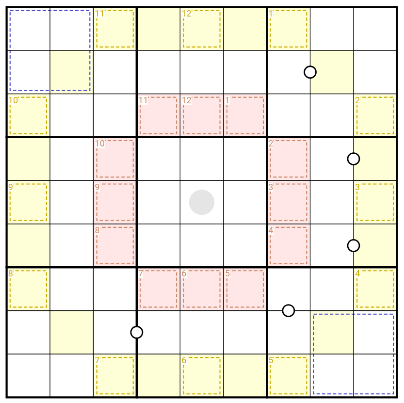 Normal Sudoku rules apply. Digits separated by a white dot are consecutive.