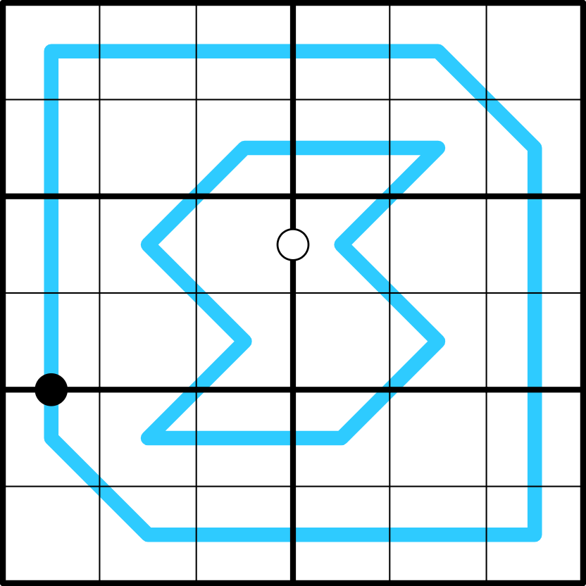 Kropki Dots: If two digits are separated by a black dot, one is twice the value of the other. If two cells are separated by a white dot they are consecutive.