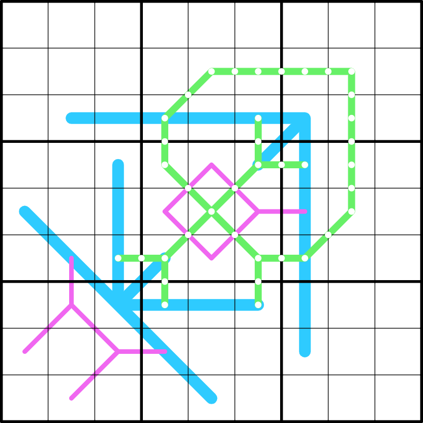 Thin pink lines are renban lines - Digits on a renban line are a set of consecutive digits in any order.