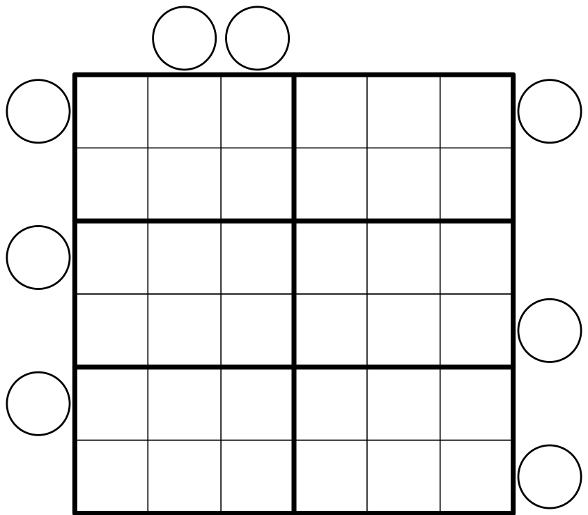 Keine Ziffer darf mehr als einmal in Kreisen erscheinen (d.h. es ist z.B. nicht erlaubt, sowohl "12" als auch "20" in Kreisen stehen zu haben).
