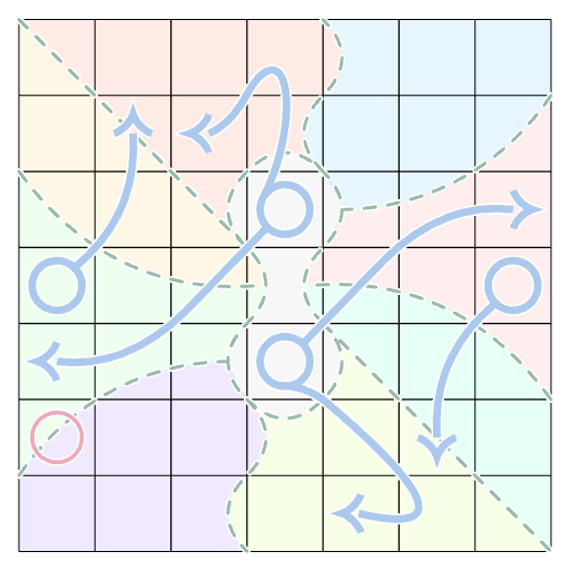 This is a puzzle I've been waffling on releasing for about three weeks. I don't think it will be everyone's cup of tea. It's very scanning intensive, and I worry that it's poorly telegraphed. Still, for the scanning/geometry/coloring fiends, I think it offers a challenging and hopefully interesting solve, so I've decided to publish it along with the above caveats and warnings. Big thanks to Nell Gwyn and gdc for testing the puzzle! All feedback is appreciated, and thanks for playing!