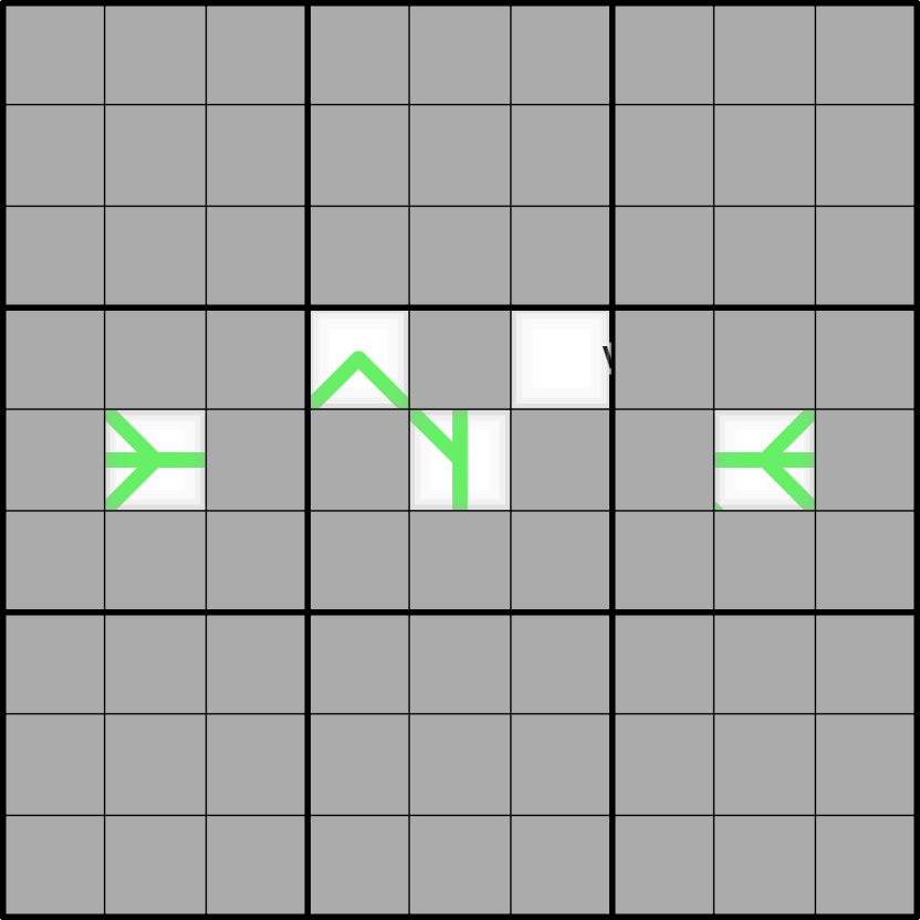 German whisper: Adjacent digits along a green line have a difference of at least 5.