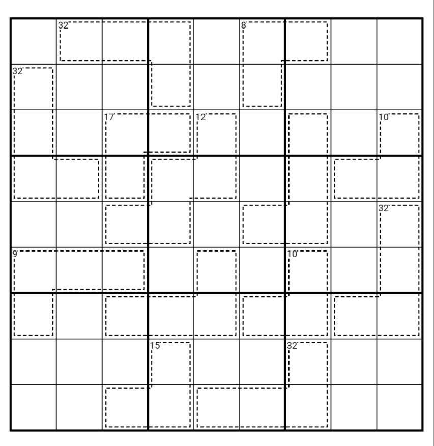 Digits in a cage sum to the total in the top-left corner (if given).
