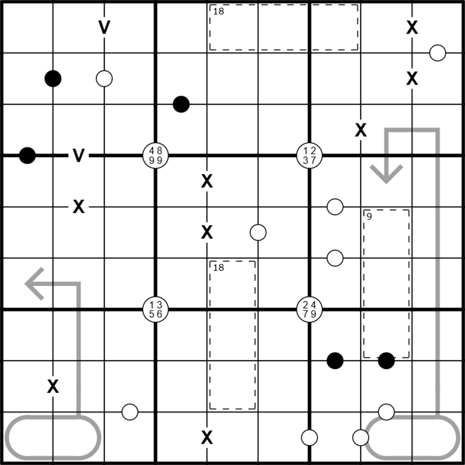 4. KILLER CAGES- Numbers in cages sum to the number in the top left corner of the cage.