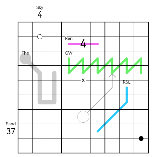 - Region Sum Line (RSL): A blue line is divided into segments by region borders. The sum of the values in each segment must be equal.