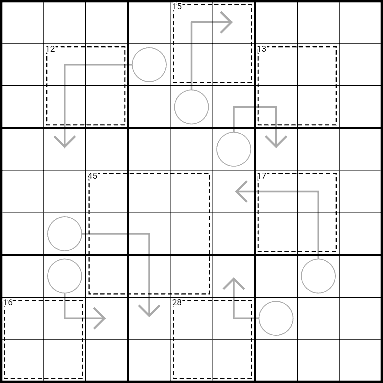 Digits on an arrow sum to the number in the attached circle. Digits may repeat on an arrow.