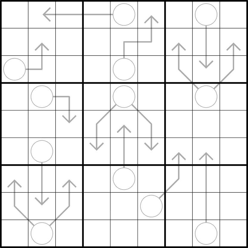 Normal sudoku rules apply. Digits along an arrow sum to the number in the attached circle.