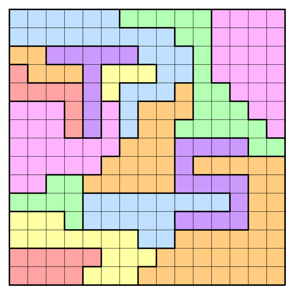 -Each color-coded region contains exactly one queen.