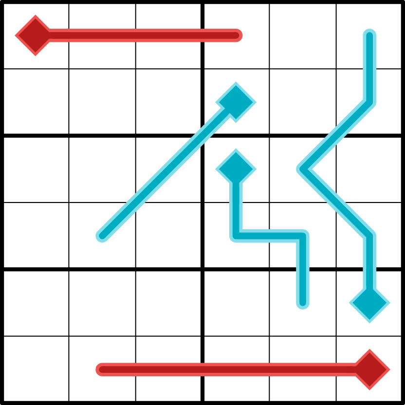 I liked the puzzle & the Hitlines once I realized what I was actually supposed to do, but the rules really confused me. In the third rule, I would change "This sum is 6" to "All Hitlines in this puzzle have a sum of 6". Also, I would change the example from having a 6 on the diamond to any other number (besides 1 of course). Maybe I was just tired, but the way the rule plus the example were written led me to think the diamonds were supposed to have the line's sum in them (like an Arrow sudoku), which led to some cool logic that didn't actually solve the puzzle :p