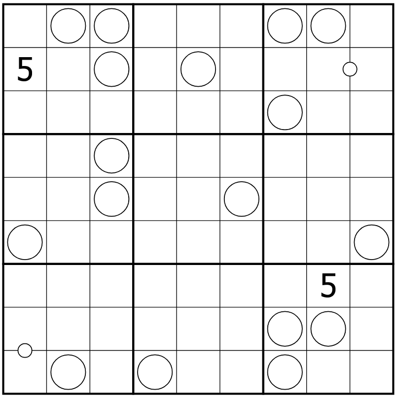- For example, if a 4 was in a circle, it would be in a group of four orthogonally connected cells that add to either 16 (if the group stays fully inside one of the 3x3 boxes) or 15 (if the group crosses at least one of the 3x3 box borders).