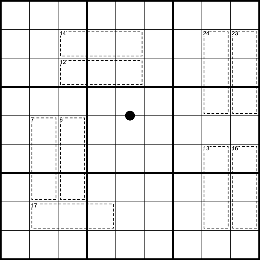 Kropki Dots: Digits separated by a black dot are in a 1:2 ratio. Not all dots are necessarily given.