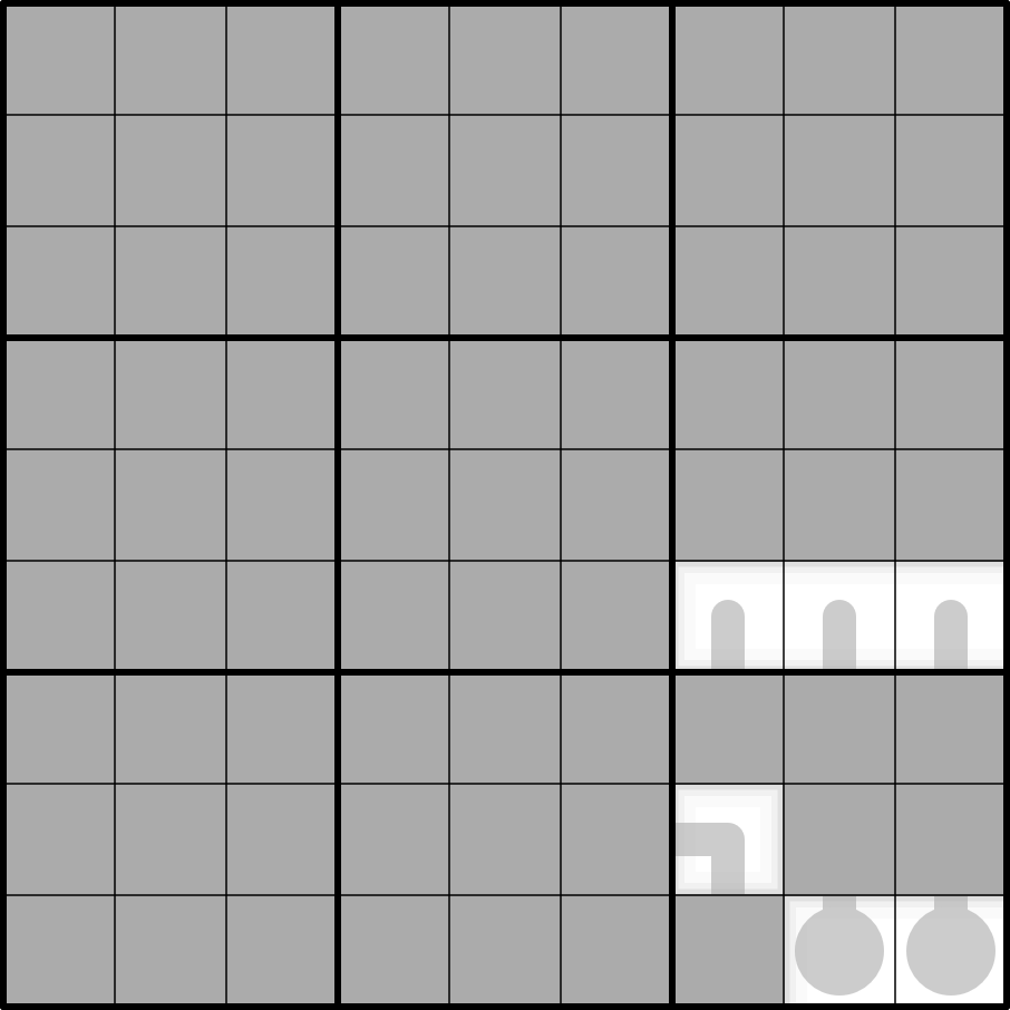 Place the digits 1-9 once each into every row, column, and box.