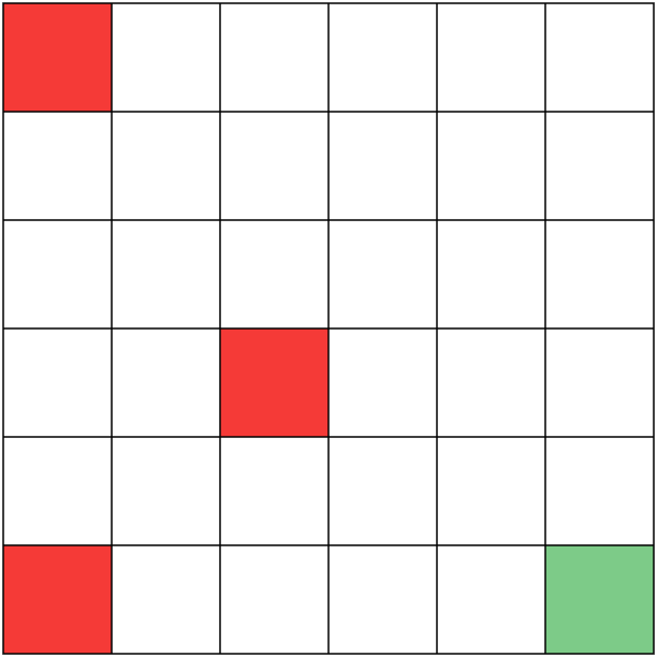 - Auf seiner Reise besucht der Springer jede Zelle genau einmal, mit Ausnahme der roten Zellen, die nicht besucht werden dürfen.