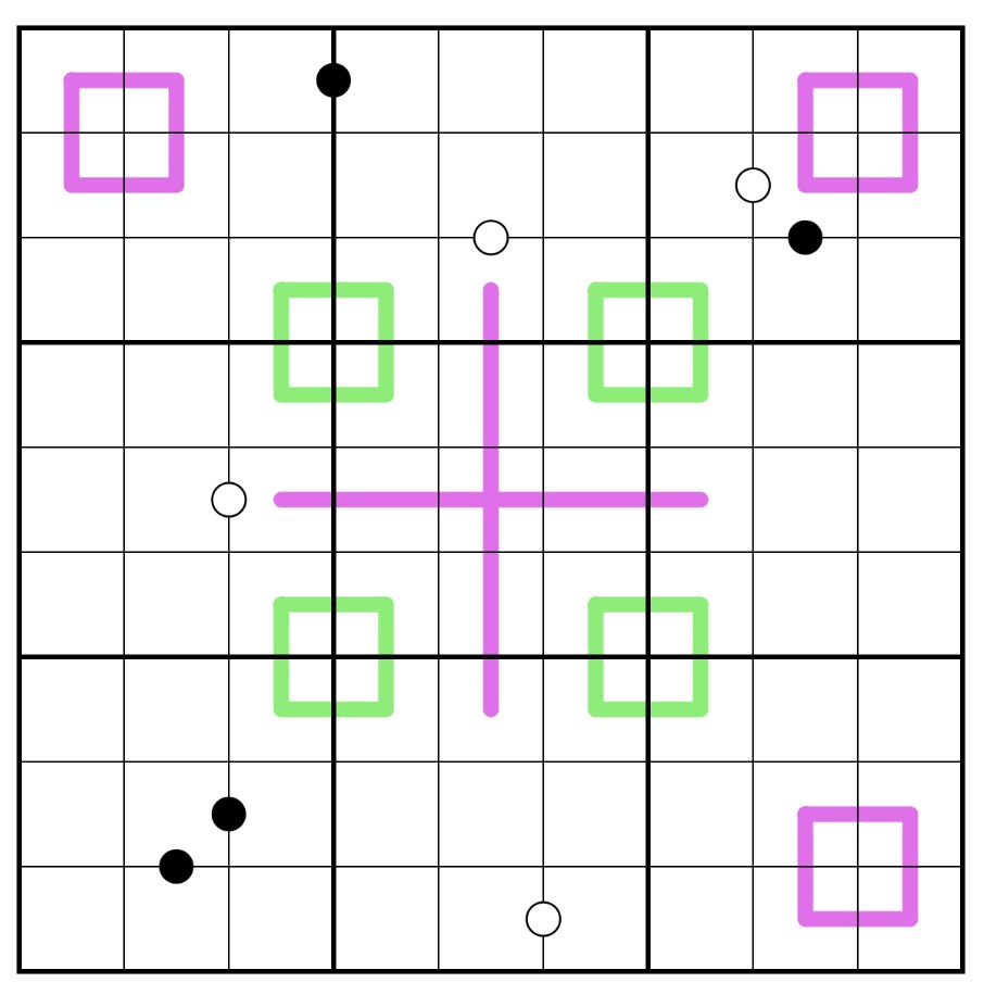 Digits on a pink Renban line form a consecutive sequence with no repeats. The central cross is a single line.