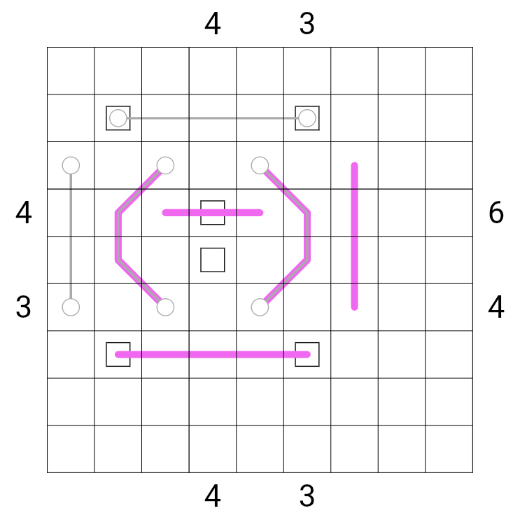 Digits outside the grid are skyscraper clues. They give the number of digits in the row or column the clue 'sees'. Digits obscure smaller digits from vision.