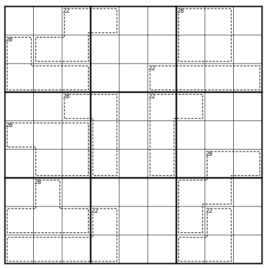 2. Digits may not repeat in cages and must sum to the total in the top left corner.