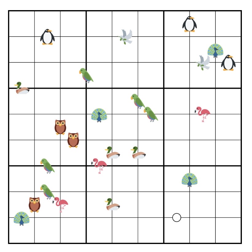 Birds: Birds represent ratios (fractions). Digits across a bird are in a ratio (equivalent fraction) that is the same for that bird throughout the grid. It is for the solver to deduce which ratio or equivalent fraction each bird represents.