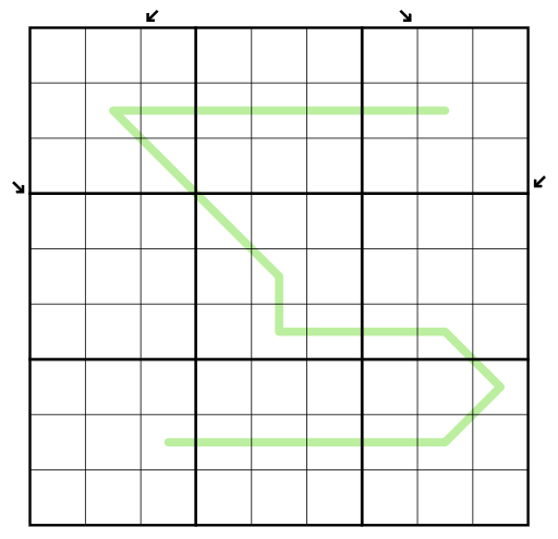 - Normal sudoku rules apply, i.e. each row, column and 3x3 region has to contain the digits from 1 to 9 once each.