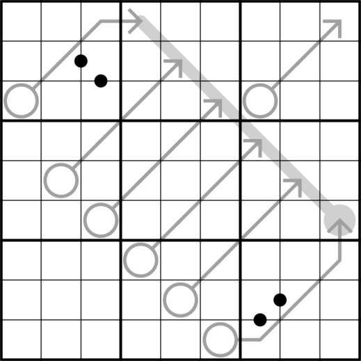 KROPKI PAIRS- Numbers with a black dot between them are in a ratio of 2:1. Not all possible dots are given.