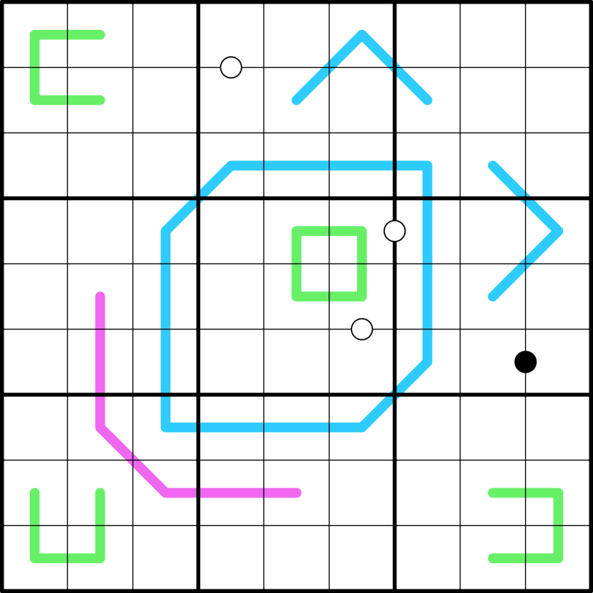 Die üblichen Sudoku-Regeln gelten. Alle verwendeten Hinweise sind die Üblichen, d.h.