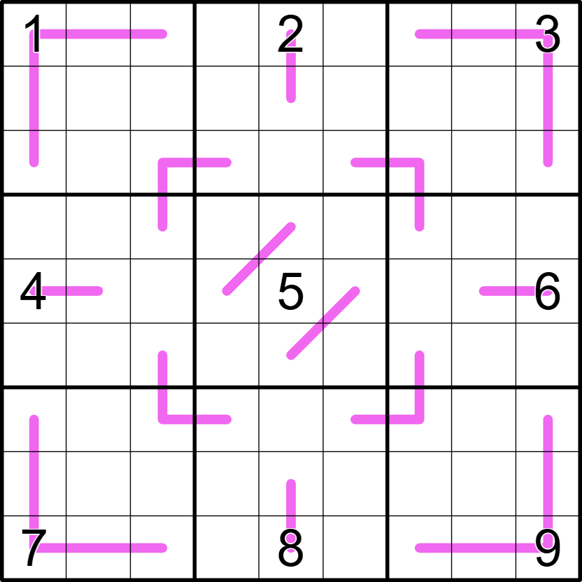 normal sudoku rules apply. digits along a purple line form a non-repeating set of consecutive digits, and may appear in any order.